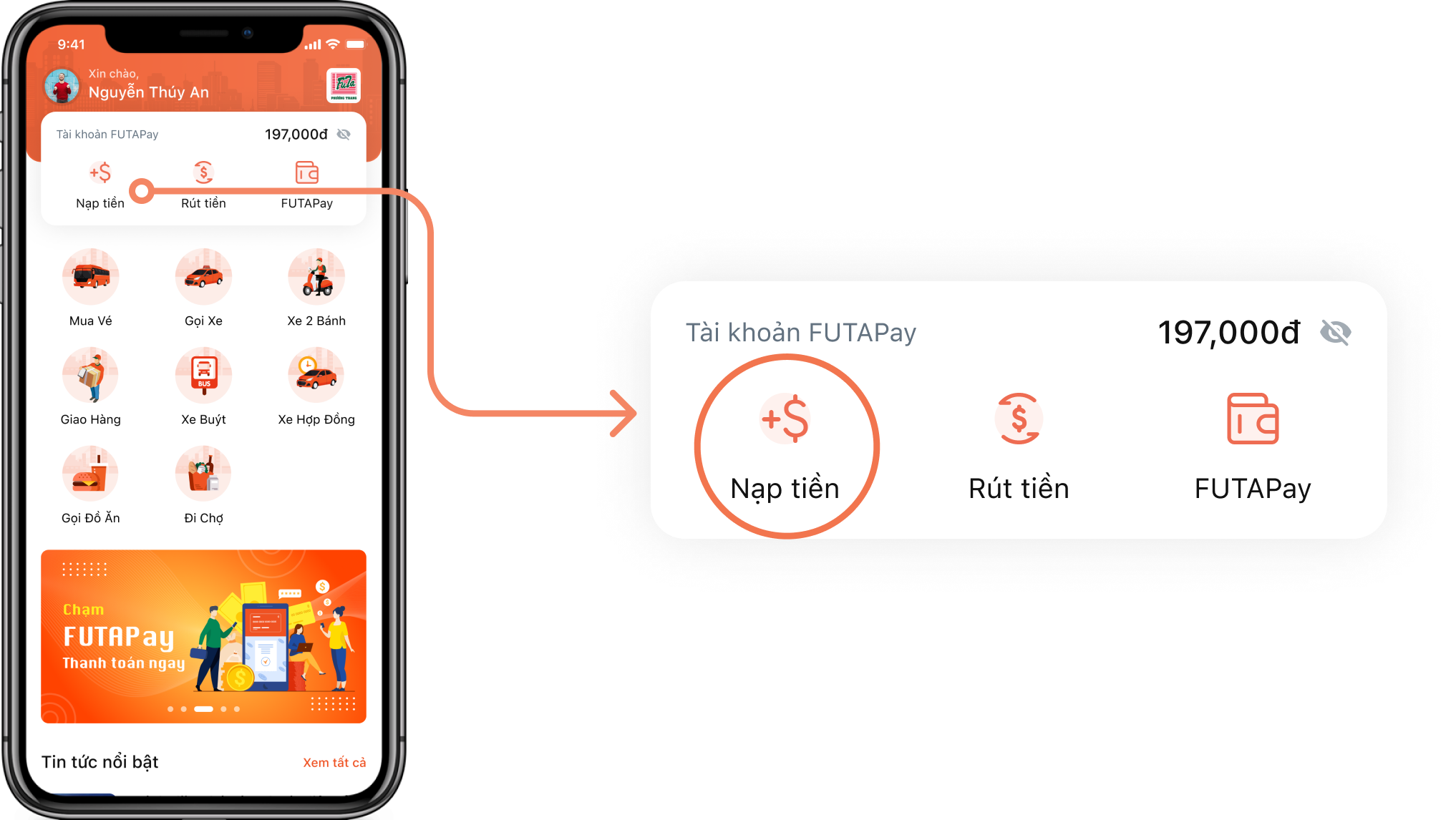 HƯỚNG DẪN NẠP TIỀN TRÊN ỨNG DỤNG FUTAPAY