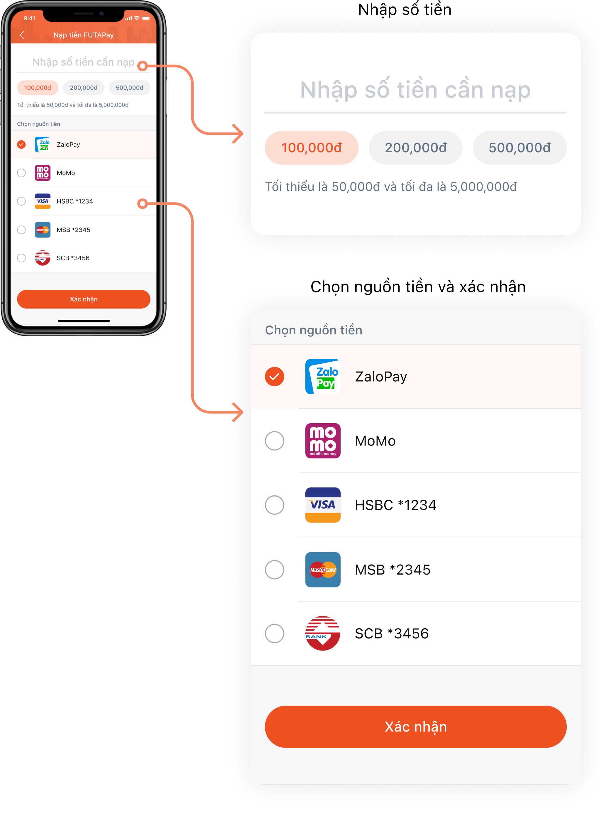 Bước 4: Nhập số tiền, chọn nguồn tiền và xác nhận